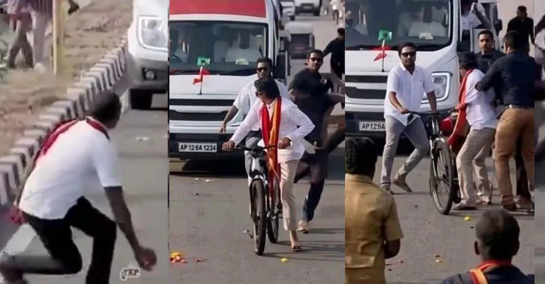 തമിഴ് വെട്രി കഴകം (ടിവികെ) അധ്യക്ഷൻ വിജയ് കന്യാകുമാരിയിൽ നടത്തിയ തിരഞ്ഞെടുപ്പ് പ്രചാരണത്തിനിടെ നടന്നൊരു സംഭവത്തിന്റെ വിഡിയോ സോഷ്യൽ മീഡിയയിൽ വൈറലൈകുന്നു.പ്രചാരണത്തിന്റെ ഭാഗമായി സൈക്കിൾ ചവിട്ടി നീങ്ങുകയായിരുന്ന വിജയ്യുടെ അടുത്തേക്ക് ജനക്കൂട്ടത്തിൽ നിന്നും ഒരാൾ ഫ്ളവര് ബോളെറിയുന്നതും, ഉടൻ തന്നെ അദ്ദേഹം സൈക്കിളിൽ തിരിഞ്ഞോടുന്നതുമാണ് ദൃശ്യങ്ങളിലുള്ളത്.ബോൾ വരുന്നത് കണ്ട്…