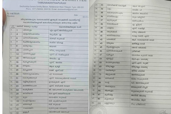 തിരുവനന്തപുരം കോര്‍പ്പറേഷനില്‍ സ്ഥാനാര്‍ഥികളെ പ്രഖ്യാപിച്ച് കോണ്‍ഗ്രസ്